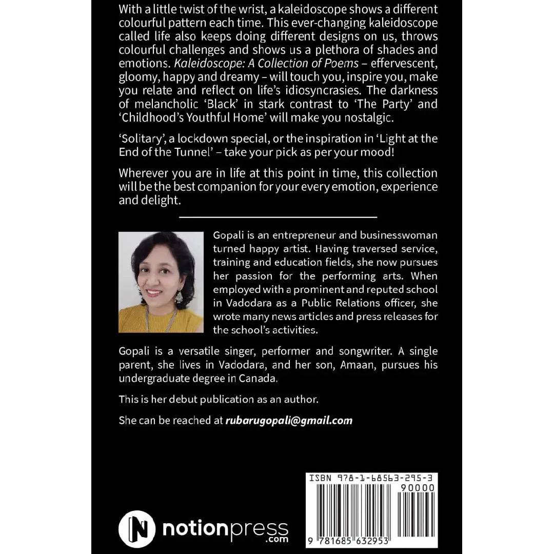 With a little twist of the wrist, a kaleidoscope shows a different colourful pattern each time. This ever-changing kaleidoscope called life also keeps doing different designs on us, throws colourful challenges and shows us a plethora of shades and emotions.Kaleidoscope: A Collection of Poems – effervescent, gloomy, happy and dreamy – will touch you, inspire you, make you relate and reflect on life's idiosyncrasies.The darkness of melancholic ‘Black’ in stark contrast to ‘The Party’ and ‘Childhood’s Youthful Home’ will make you nostalgic.